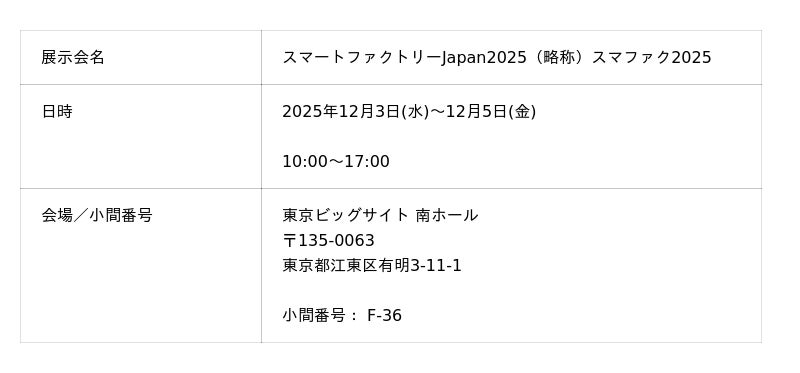 「スマートファクトリーJAPAN2025」は、これからのモノづくり現場の先進化・効率化に直結する、具体的なソリューションや製品を展示公開。未来の工場を実現するための情報収集の場として、2025年12月3日より東京ビッグサイトで開催されます。