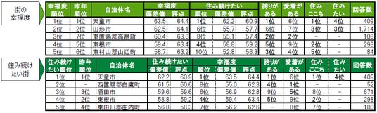 街の幸福度&住み続けたい街ランキング<TOP5> & 各種ランキング順位