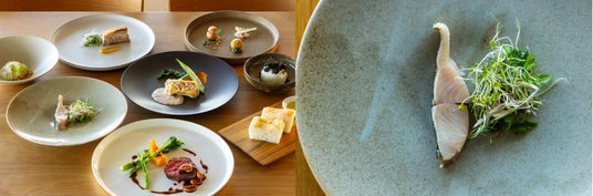 10月1日から提供を開始した新ディナーコースは、蔵元 竹の露酒造場の超軟水、栽培方法に徹底的にこだわる出羽弥兵衛の米、庄内浜で水揚げされる旬の魚介など、庄内を代表する素材を組み合わせて一皿一皿を通して「水と米」の物語を味わえる構成としました。 12,000円、9,500円、7,000円の3種類をご用意し、いずれのコースにも庄内の米を活かしたアミューズ、つや姫パン、締めのつや姫おむすびと(12,000コースは岩のりおむすび)地魚のだしを取り入れ、庄内ならではの恵みを五感で堪能いただけます。
