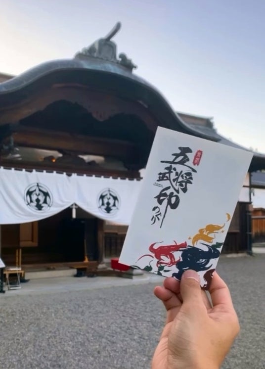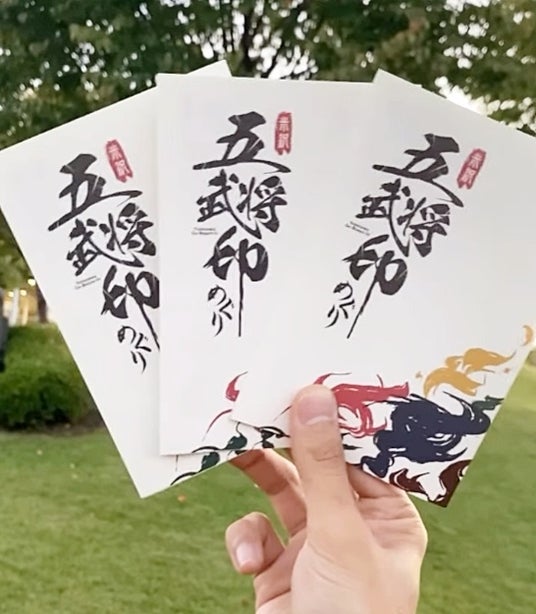 愛の武将隊「五武将印を台紙に押印し、自分なりの書き込みもできる自由度の高い台紙です。また、旅の記念となるだけでなく、ご自宅に飾ったり、お友達と見せ合うこともできるデザイン性の高い五武将印です。米沢で活躍する愛の武将隊とも親和性が高く、米沢を小さくめぐる旅としてぜひ体験いただきたい観光素材となっています。」