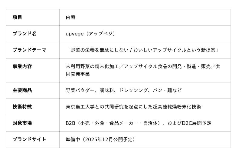 アップサイクルフードブランド「upvege(アップベジ)」を正式にローンチしました。