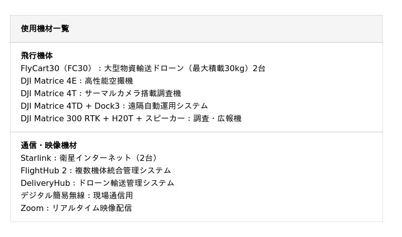 当協会では、今回の福山市訓練で実証した高度なドローン運用技術を、全国の自治体・消防・警察機関および防災団体の防災訓練に提供いたします。