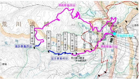 徒歩と車両による点検でかかる時間(移動だけで3時間)