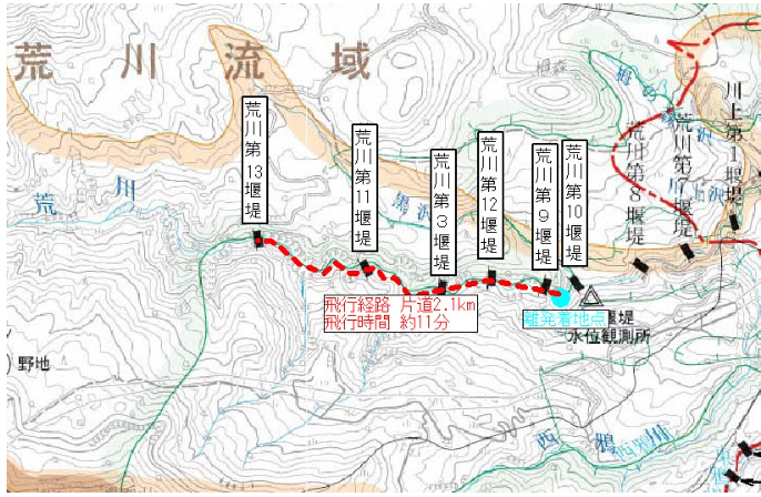 砂防施設の巡視点検では、荒廃箇所や急傾斜地の移動を伴うため作業効率低下や安全性の問題がありました。今回の検証では、徒歩移動困難箇所の克服と、流域全体の把握が可能となりました。