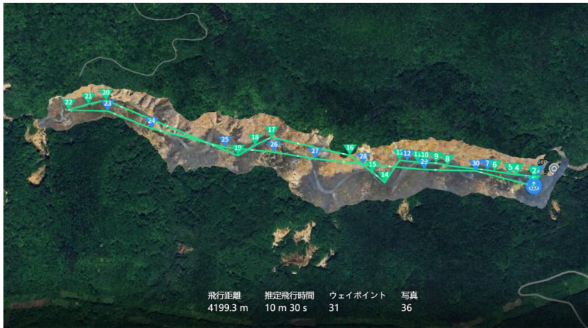 初回に3Dモデルを作成し、飛行ルートや撮影ポイントを精密に設計。