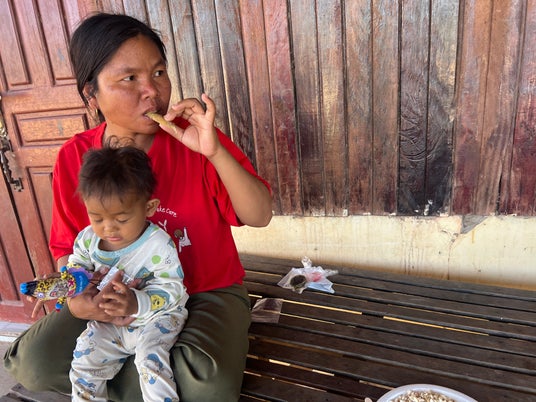 団扇でカンボジアの凉を取る