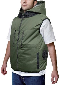 商品名:valborder 遮熱フードベスト・遮熱-10℃効果の裏チタンコート生地。