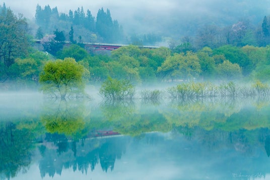 山形県飯豊町(いいでまち)の白川湖で春の2か月間だけ見ることができる神秘的な風景。