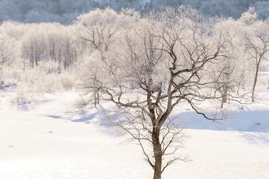 シロヤナギの木々が芽吹く前は湖岸の残雪とともに白に包まれる静寂の世界が広がります。